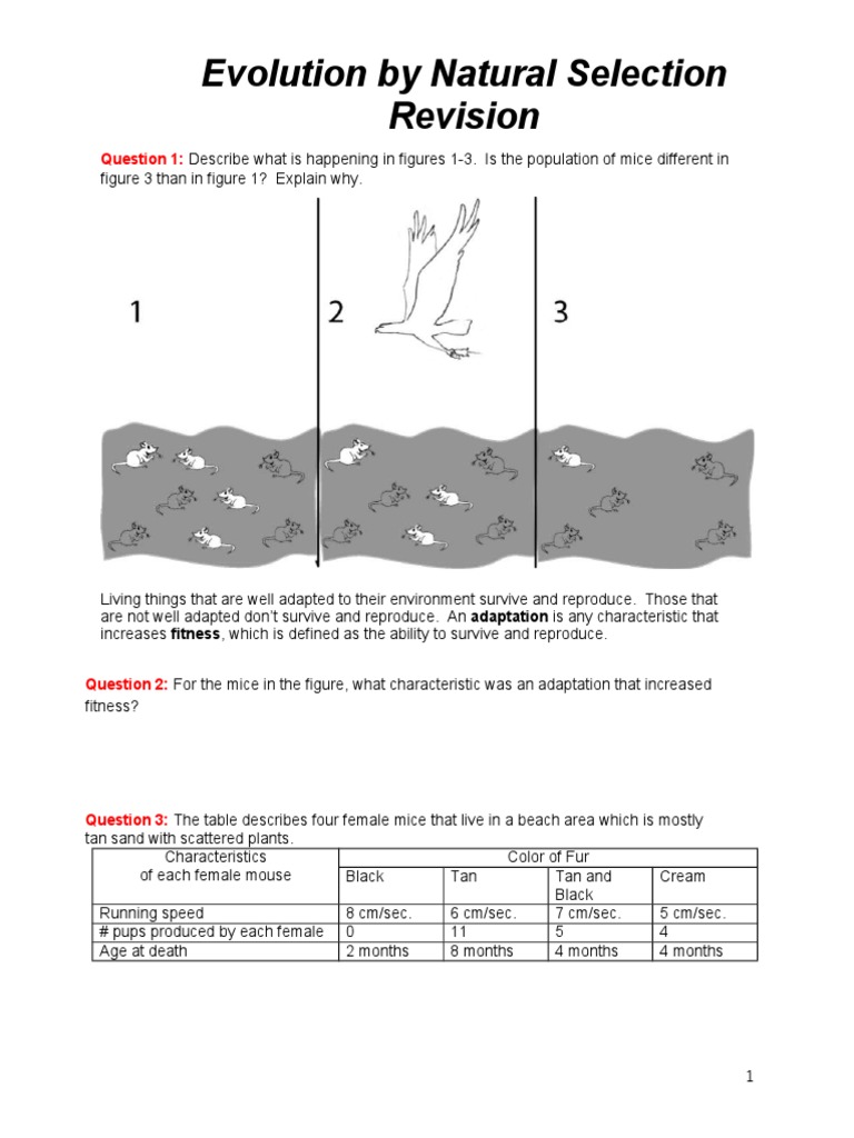 Topic 4 Natural Selection Revision Work Sheet Completed Edit