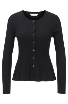 Boss Slim Fit Cardigan In A Ribbed Merino Wool Blend
