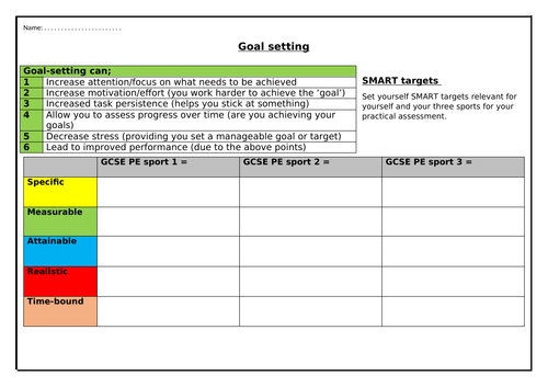 Edexcel Gcse Pe 9 1 Goal Setting Teaching Resources