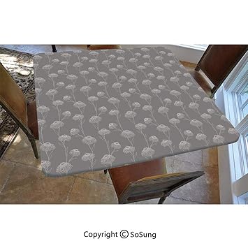 Amazon Com Taupe Polyester Fitted Tablecloth Chrysanthemum Blooms
